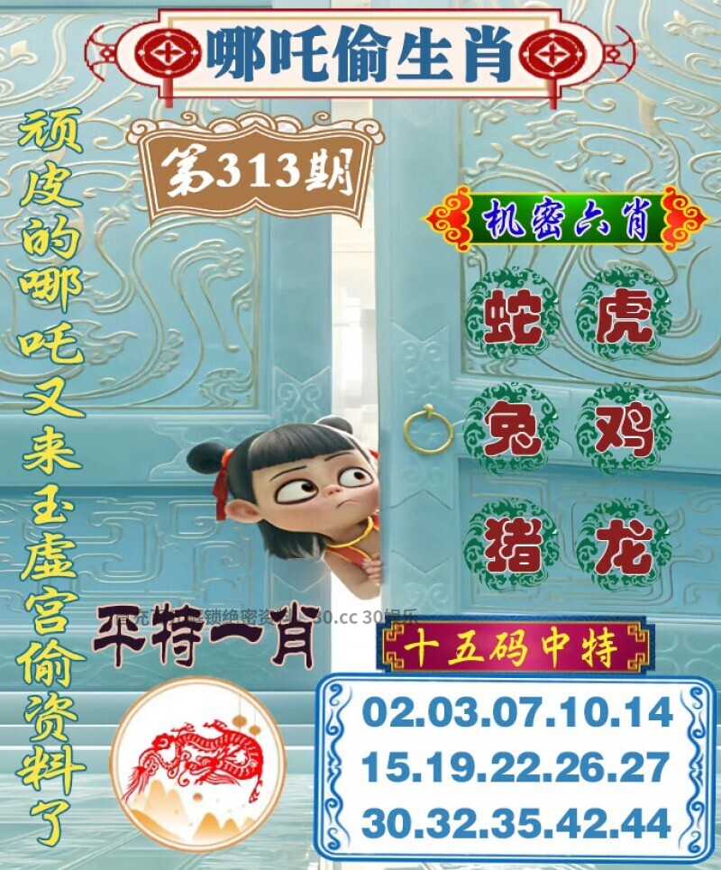 | 312期 | 七肖★鸡马蛇鼠兔虎猪 | 开:龙14 |